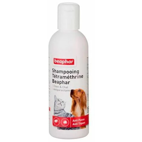 Le shampoing antiparasitaire pour chien et chat lutte efficacement contre les puces et les tiques.A base de tétraméthrine, ce shampoing va nettoyer et proteger votre animal tout en détruisant rapidement les ectoparasites. Shampoing antiparasitaire pour chien et chat Beaphar à base de tétraméthrine Détruit raidement les puces et les tiques Convient aux animaux qui ont la peau sensible Peut être utiliser chez les chiens ou chats à partir de 2 mois A utiliser dans le cadre d’un traitement anti-tique et anti-puce 2 conditionnements : 200ml ou 500ml Médicaments à usage vétérinaire. Usage externe ne pas avaler. Lire attentivement la notice avant utilisation. Demandez conseil à votre vétérinaire ou votre pharmacien. En cas de persistance des symptômes, consultez un vétérinaire.