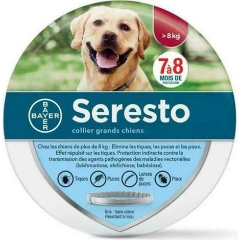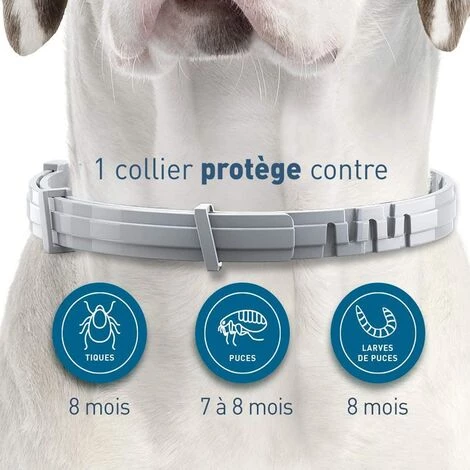 COLLIER ANTIPARASITAIRE LONGUE DUREE : protège votre chien contre les puces pendant 7 à 8 mois et jusqu’à 8 mois contre les tiques