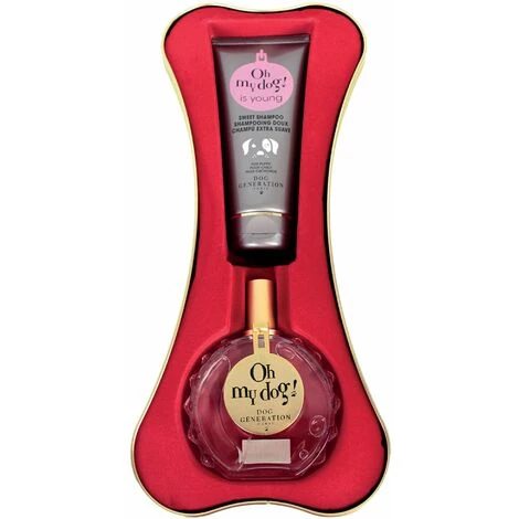 Vous souhaitez offrir un cadeau à votre animal ? alors le coffret Oh My Dog est fait pour vous.Ce joli coffret contient le célèbre parfum Oh My Dog et un flacon de shampoing. Coffret doré en forme d’os contenant 1 parfum Oh My Dog 100ml et 1 shampooing chiot 200ml Oh My Dog. Le coffret « os » Oh My Dog est un cadeau parfait pour un fidèle compagnon à 4 pattes. Le shampoing Oh My Dog is Young convient à tout type de chiot. Il rend le poil doux et brillant et n’irrite pas les yeux et les muqueuses. Le parfum Oh My dog est spécialement formulé pour respecter le poil et la peau du chien Il laisse une odeur agréable et de longue durée.