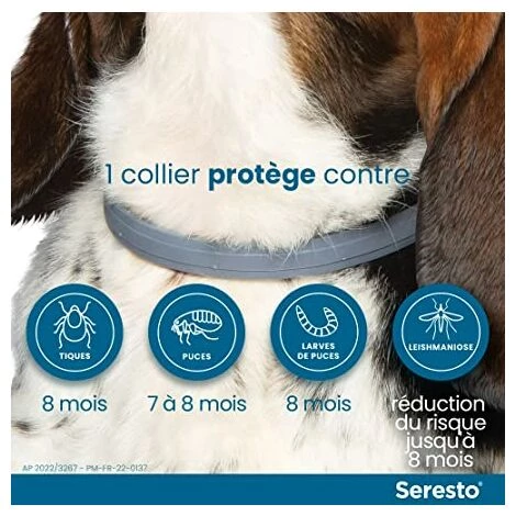 Collier antiparasitaire longue durée : protège votre chien des puces pendant 7 à 8 mois et des tiques jusqu’à 8 mois