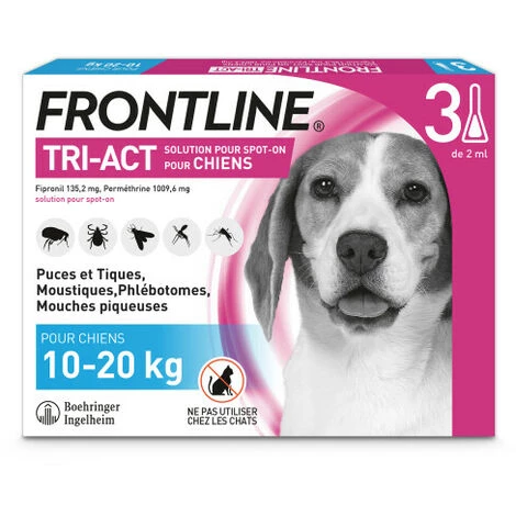 Frontline Tri-Act anti parasitaire Spot on pour chien est une solution Fipronil + Perméthrine.