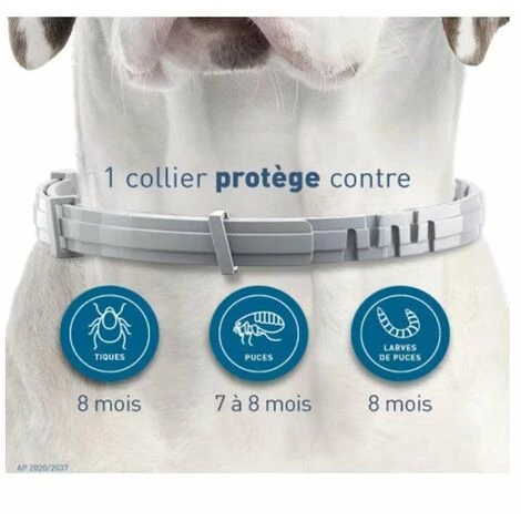 COLLIER ANTIPARASITAIRE LONGUE DUREE : protège votre chien contre les puces pendant 7 à 8 mois et jusqu’à 8 mois contre les tiques