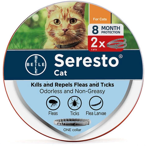 COLLIER ANTIPARASITAIRE LONGUE DUREE : Seresto protège votre chat contre les puces pendant 7 à 8 mois et jusqu’à 8 mois contre les tiques.