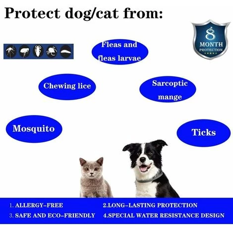 Protection à long terme pendant 8 moisLe collier anti-puces et anti-tiques de 8 mois continue de fonctionner 24 heures par jour, valable jusqu’à 8 mois. Il peut efficacement lutter contre les puces, les tiques et autres insectes qui peuvent entrer en contact. Vous n’avez pas besoin de changer fréquemment, économisez vos efforts.