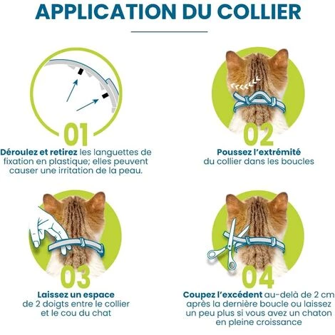 COLLIER ANTIPARASITAIRE LONGUE DUREE : protège votre chat contre les puces pendant 7 à 8 mois et jusqu’à 8 mois contre les tiques. Le collier antiparasitaire est recommandé par les vétérinaires.