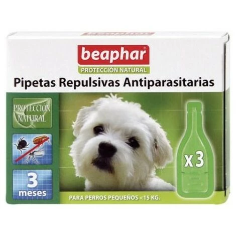 Beaphar Pipettes antiparasitaires répulsives Puces, tiques et moustiques avec des extraits de Margosa et Pietro. À appliquer sur le cou. À partir de 3 mois. Propriétés: Les pipettes antiparasitaires répulsives ont été spécialement développées pour repousser les insectes piqueurs tels que les puces, les tiques et les moustiques. Ces pipettes sont un répulsif efficace contre les puces, les tiques et les moustiques. Il est fabriqué avec des huiles essentielles 100% naturelles et de l’extrait de Margosa afin qu’il ne soit pas toxique pour l’animal ou l’environnement. Le margosa, également connu sous le nom d’arbre neem, est un arbre originaire de l’Inde où ses qualités répulsives contre les puces, les tiques et les poux sont très appréciées, ainsi que pour ses propriétés apaisantes et curatives. COMMENT UTILISER: Séparez les poils de l’animal sur le cou, juste derrière les oreilles et appliquez le contenu de la pipette directement sur la peau. Renouvelez l’application tous les 4-5 jours pour assurer une protection optimale. RÉCIPIENTS: – Petit chien – Chien moyen 15-30Kg: boîte 3pipetas x 2ml. Contenu pour 3 applications – Grand chien >30kg: boîte 6 pipettes x 2ml. Contenu pour 3 applications.