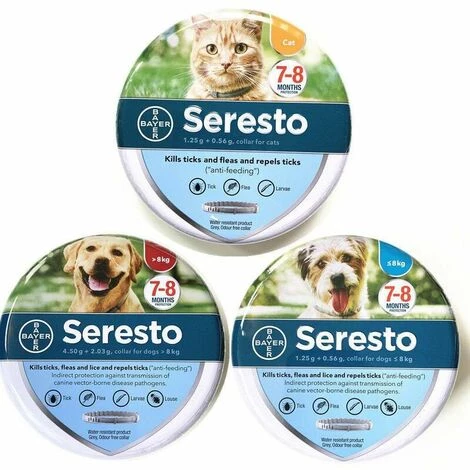 Collier Seresto pour la prévention et le traitement de l’infection par les puces pendant 7 à 8 mois Protection efficace – Inhibe le développement des petits et protège l’environnement des animaux jusqu’à 8 mois, aide au traitement de la dermatite allergique causée par les puces Collier, convient à plus de 7 semaines de naissance et à un chien de plus de 8 kg