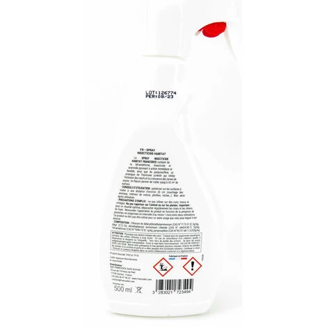 - Spray insecticide habitat. flacon de 500 ml. traitement antiparasitaire de l’environnement de l’animal.