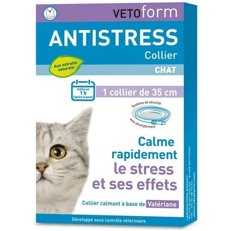 Le collier calmant de VETOform réduit le stress et les problèmes comportementaux des chats de toute race et de tout âge, grâce à l?extrait naturel de Valériane et de Lavande.