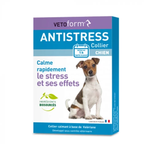 Le collier calmant de VETOform réduit le stress et les problèmes comportementaux des chiens de toute race et de tout âge, grâce à l?extrait naturel de Valériane et de Lavande.