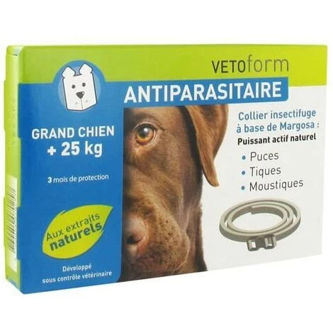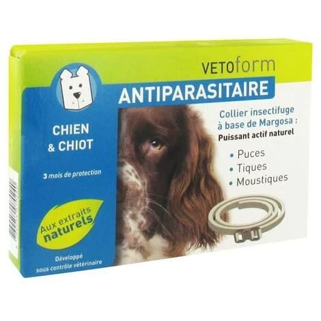 Le collier Vetoform antiparasitaire est un collier insectifuge aux extraits de Margosa, pour chien et chiot